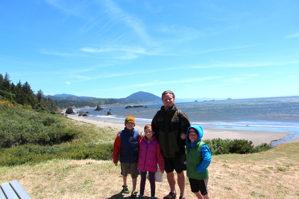 My oldest is on the beach and my younger two are on top of battle rock. Can you see the faint pink and blue? My daughter was determined to climb up but panicked on how to get back down. Luckily dad went up to help.