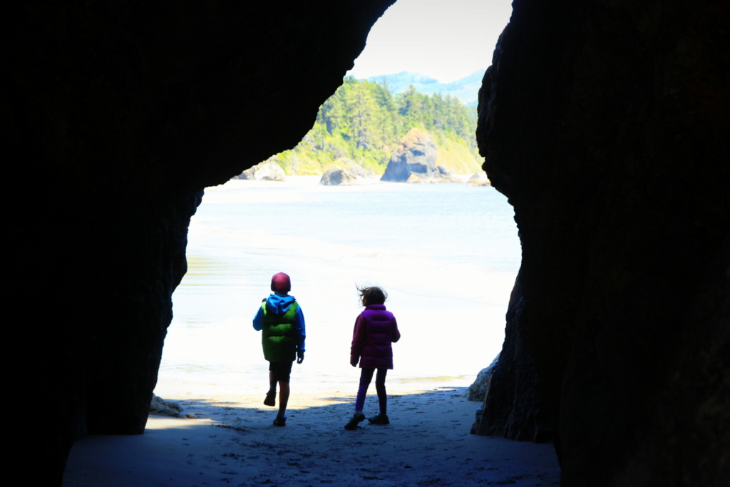The sign in the parking lot telling about Battle Rock was so intriguing that after lunch the kids wanted to climb battle rock and imagine what it must have been like being all alone on that rock in a foreign and hostile environment. Lots of imaginary battles were fought. In addition, we roamed, checked out the secret cave, my oldest played catch against the rock, and the dog chased birds. It was a wonderful stretch-your-legs rest stop. And then it was time to move on further up the coast.