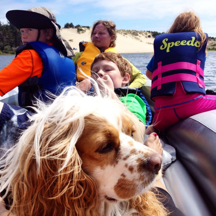 Dogs are allowed everywhere except on the swimming beach and in the boat rentals. Lucky for Lady, hubby received an inflatable boat for Father’s Day and she was able to accompany us on our boat as we toured the lake. We had one set of oars and will need more as rowing was quite popular activity for the kids. This gave hubby and I the chance to sit back and relax, pretending to be on a date together in a relaxing setting rather than the reality of our situation. The reality was we were all crammed together with our active splashing and often argumentative kids fighting over turns with the oars and shouting directions while our dog preferred to lay across us rather than have to sit by the wet and loud children. Ah…good times.
