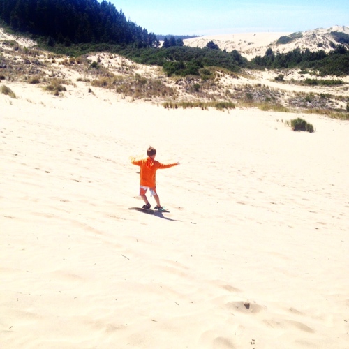We spent most of our days on the Cleawox Lake in the water or on the dunes. Hubby found a sand board rental shop in town that carried both adult and child boards. They even had sitting boards which my daughter preferred to use. The boys picked up sand boarding quite easily and alternated their time between the dunes and the water.