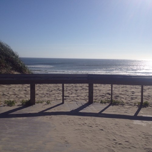 We traveled often down to the beach from the campground during our stay. The access to the beach is on a paved trail about a quarter of a mile straight ahead followed by a lovely Boardwalk. If you stay to the right of the Boardwalk, you will find this viewing deck with benches and telescopes and informational boards about the coast. This deck was created by volunteers for those unable to navigate the sandy dunes to see the ocean. They can stay right here and enjoy the views. Isn’t that the nicest thing ever?
