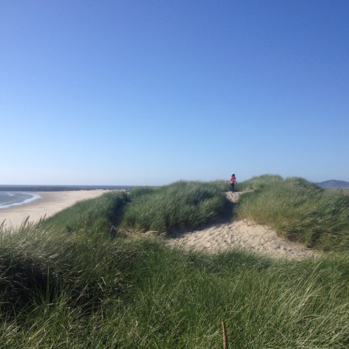 My daughter and I snuck away from the boys one afternoon to investigate the bike trails and path to the beach. Here she is dancing high up on the dunes.
