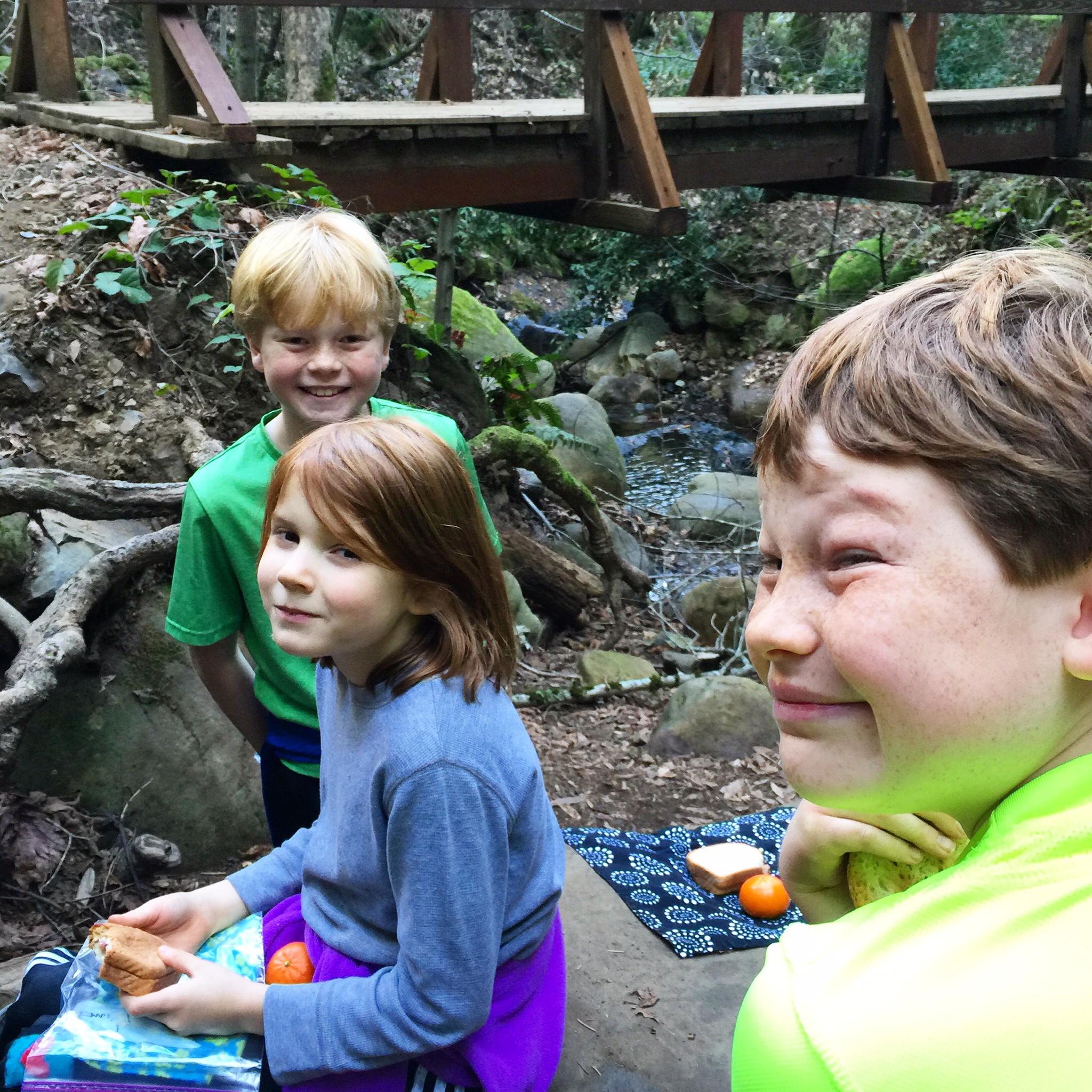 Uvas Canyon has been on our local list of places to hike to see the waterfalls for awhile now. I had read the best time to visit was of course right after a rainy day as the falls would be full and plentiful. Not sure what to expect as the rain has been on a hiatus this month. Would there even be any water to fall over the rocks? Was it worth the visit now? We decided, why not. So after breakfast we packed a picnic lunch, took our favorite local trail guide book, “Best Hikes with Kids in the SF Bay Area,” by Laure Latham and packed our pockets full of skittles. Now we were ready.