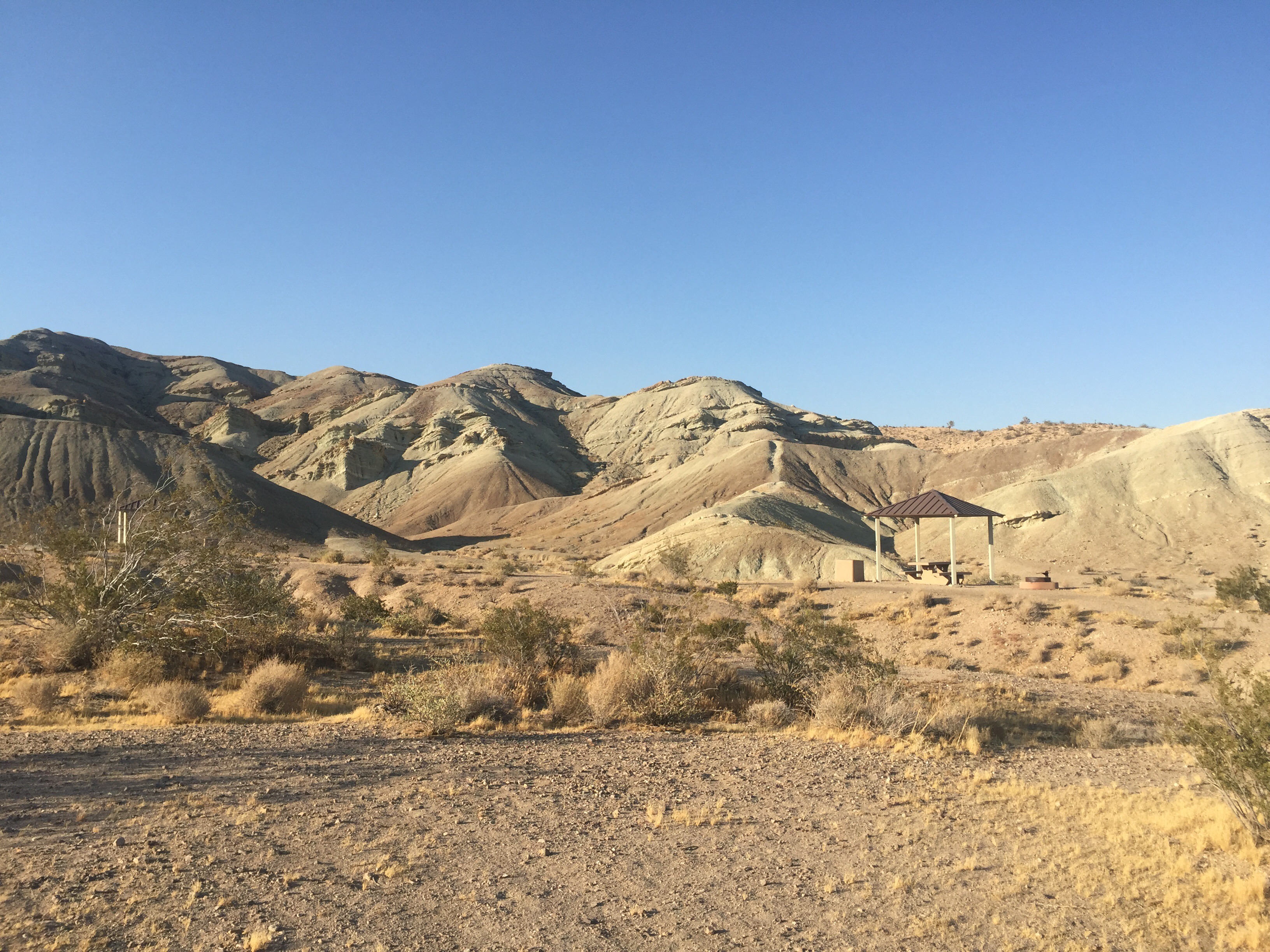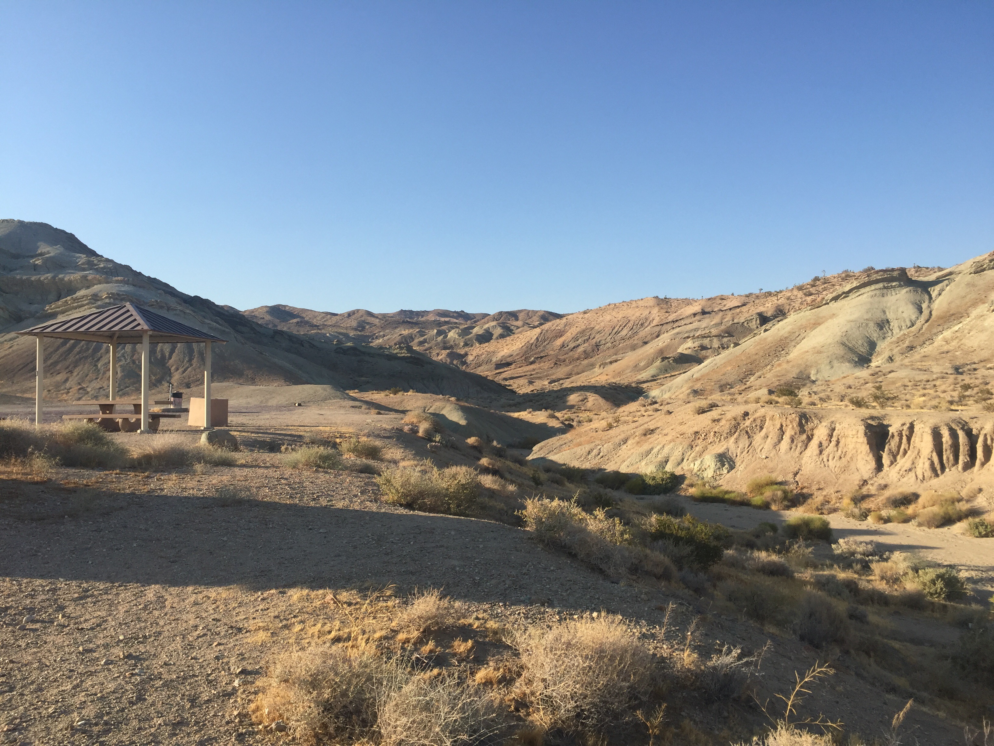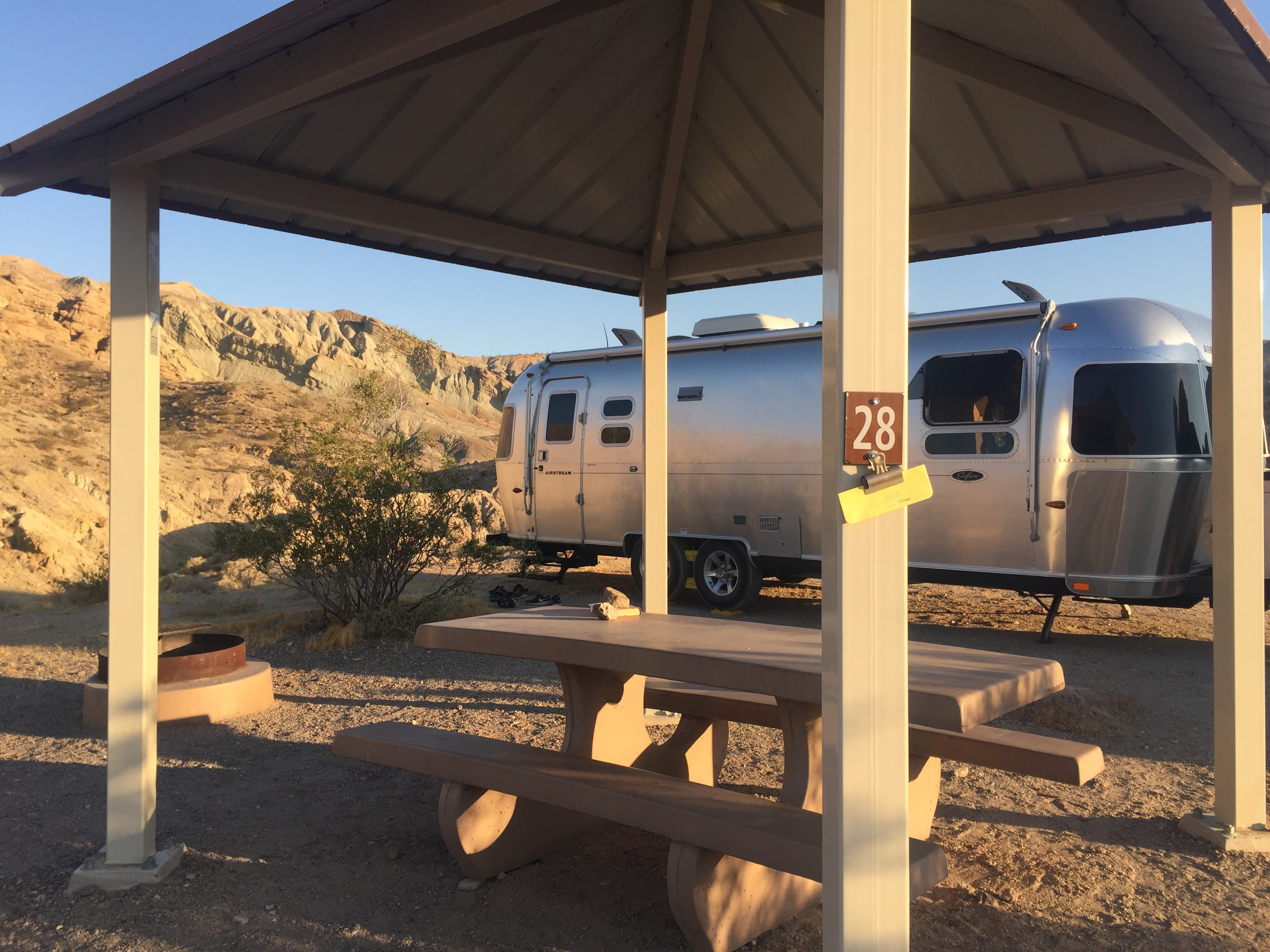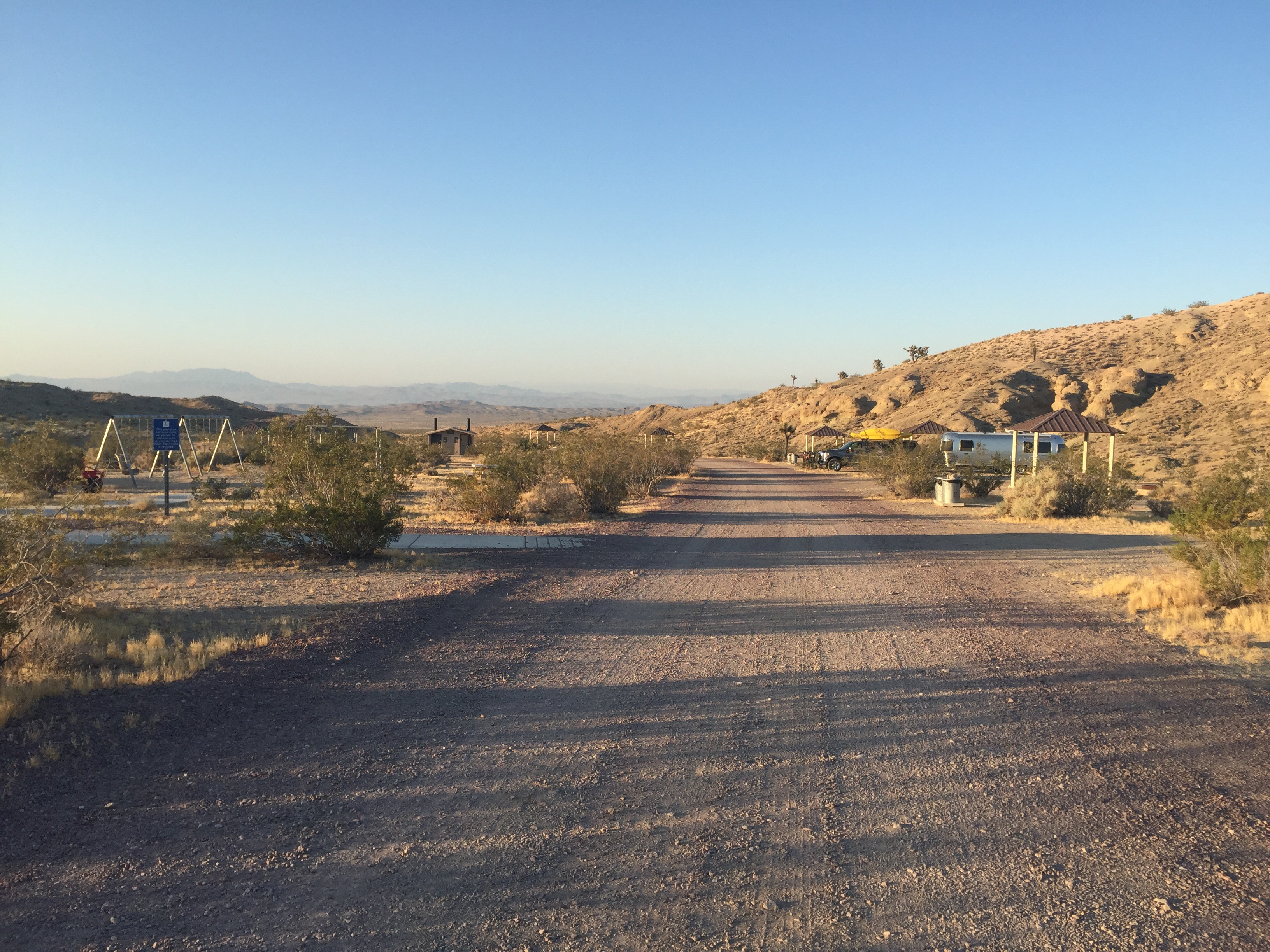 Our summer adventures brought us through Barstow for a one night stop. It was a 104 degrees that evening. We were grateful to spend the night in the canyon above Barstow where the light wind provided relief from the high temps. The two mile gravel road was wide but bumpy as we ascended to the campground. Once there we found it be an oasis in the desert for six dollars a night. It was completely empty giving us first choice to any site we desired. Our only thought was the site with the best shade coverage.